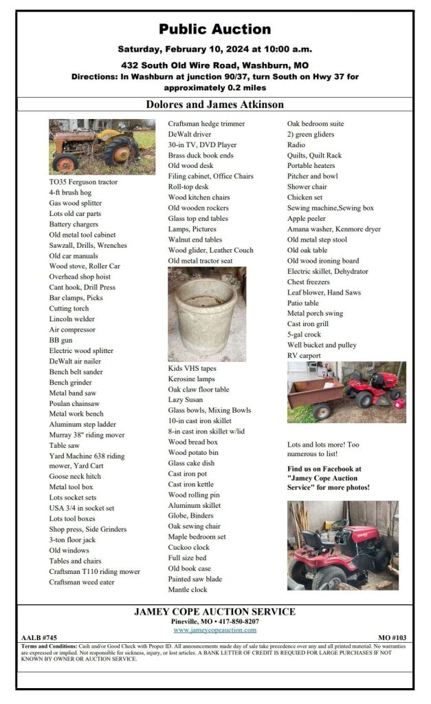 Public AuctionSaturday, December 2, 2023 @ 10:00 a.m.