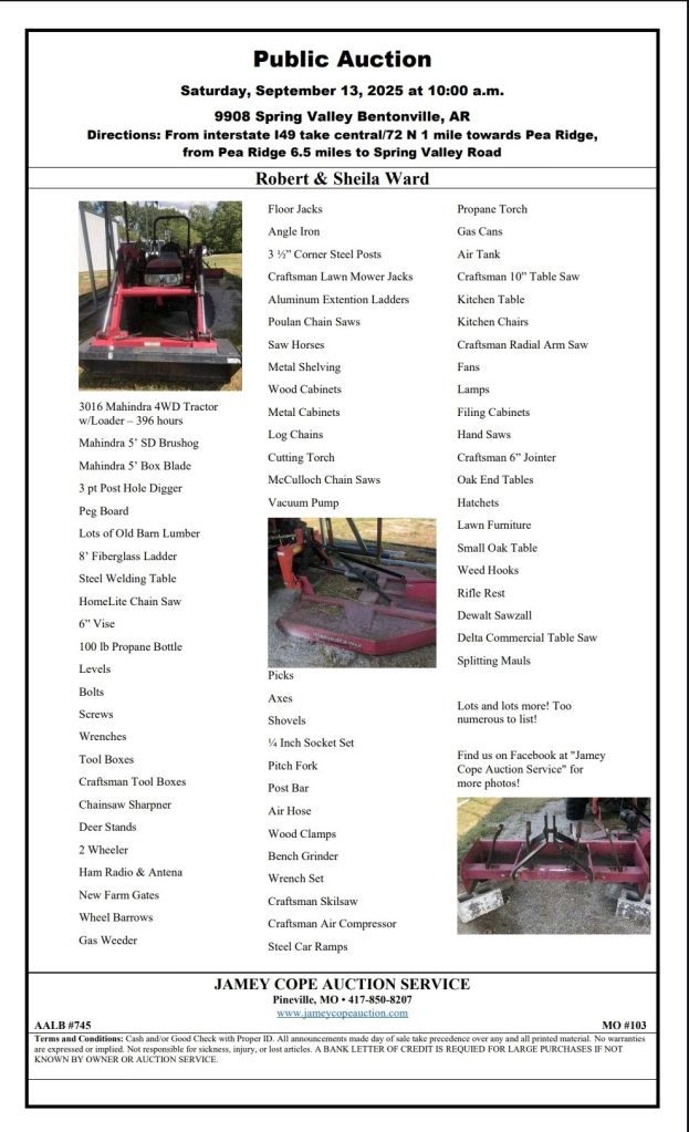 Public Auction Saturday, July 27, 2024 at 10:00 a.m.